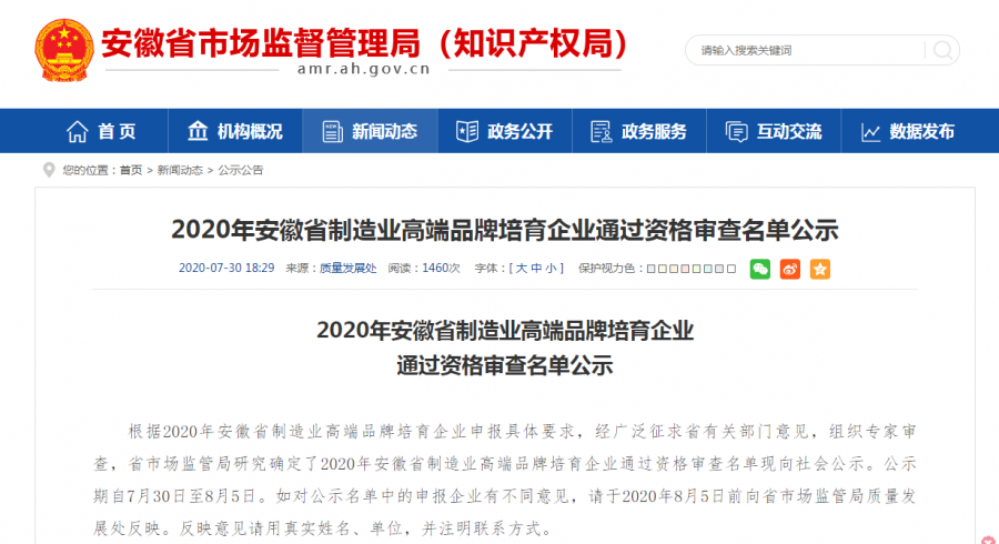 根据2020年安徽省制造业高端品牌培育企业申报具体要求,经广泛征求省有关部门意见,组织专家审查,省市场监管局研究确定了2020年安徽省制造业高端品牌培育企业通过资格审查名单现向社会公示。科希曼通过资格审查列入名单。