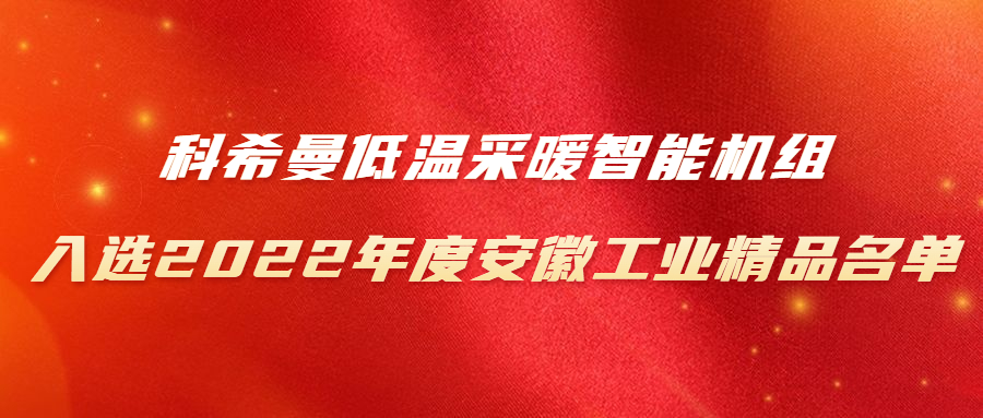 近日,安徽省经济和信息化厅发布关于2022年度安徽工业精品拟认定名单的公示,经企业申报、各市推荐、专家评审等程序,认定科希曼电器有限公司研发的KFLRB-14I型空气能热泵低温采暖智能机组为2022年度安徽工业精品。