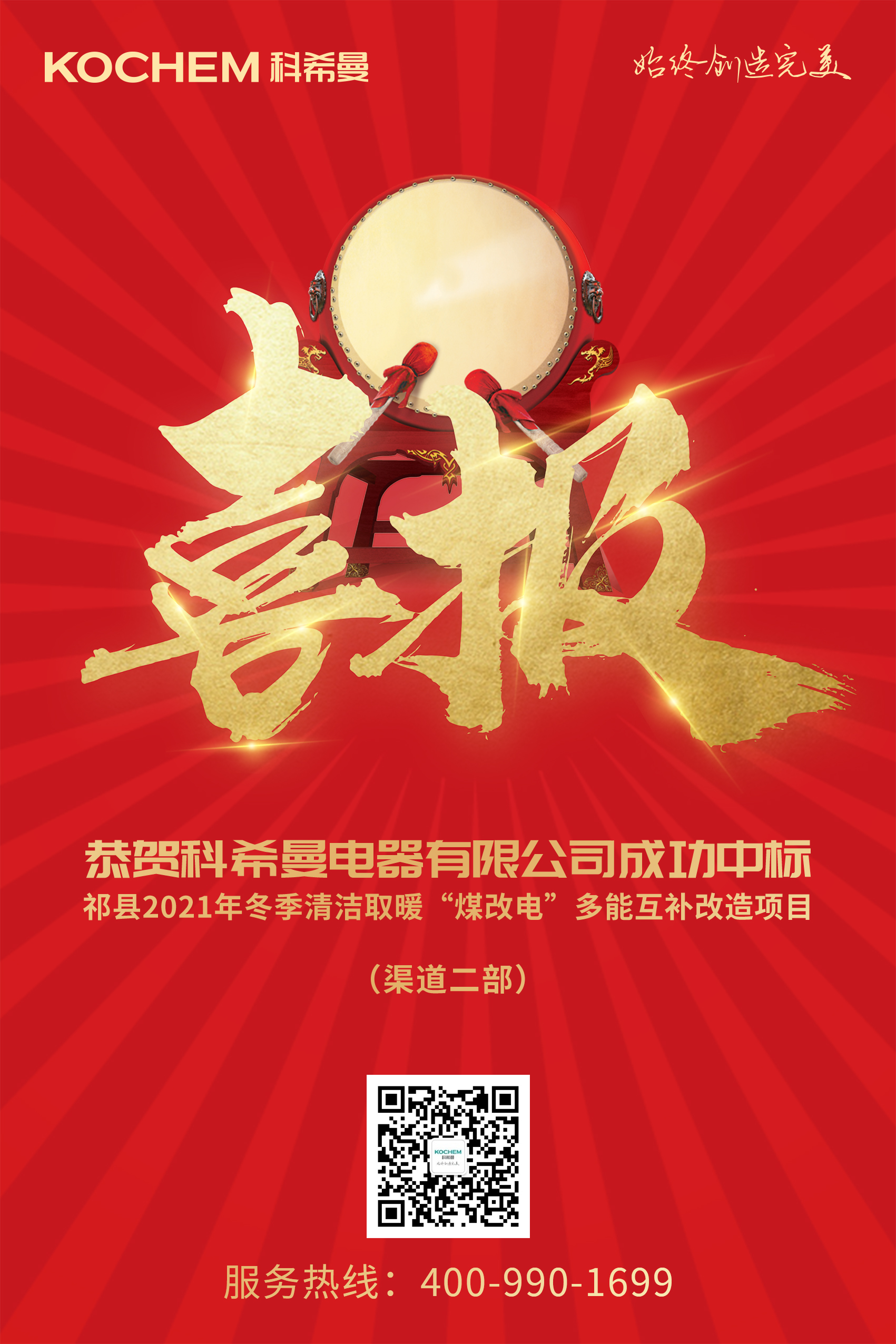 在祁县2021年冬季清洁取暖“煤改电”多能互补改造项目的招标工作中,招标方从产品品质、综合实力、售后服务能力到市场服务口碑都进行了严格审查筛选,希望能让最优质、最可靠的产品和服务保障当地工程的顺利建设。此次中标不仅证明了科希曼的品牌实力,同时也意味着,科希曼将分担起祁县大气环境质量改善的重任。