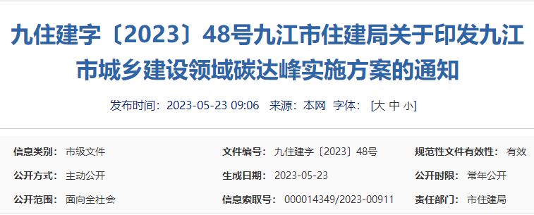 近日,九江市住建局发布《九住建字〔2023〕48号九江市住建局关于印发九江市城乡建设领域碳达峰实施方案的通知》,方案优化城市用能建设结构中提到,到2025年,城镇建筑可再生能源替代率达到8%,新建公共机构建筑、新建厂房屋顶光伏覆盖率力争达到50%。在太阳能资源较丰富地区及有稳定热水需求的建筑中,积极推广太阳能光热建筑应用。因地制宜推进地热能、生物质能应用,推广空气源等各类电动热泵技术。打造绿色低碳县城和乡村部分提到,推广应用可再生能源。推进太阳能、地热能、空气热能、生物质能等可再生能源在乡村供气、供暖、供电等方面的应用。