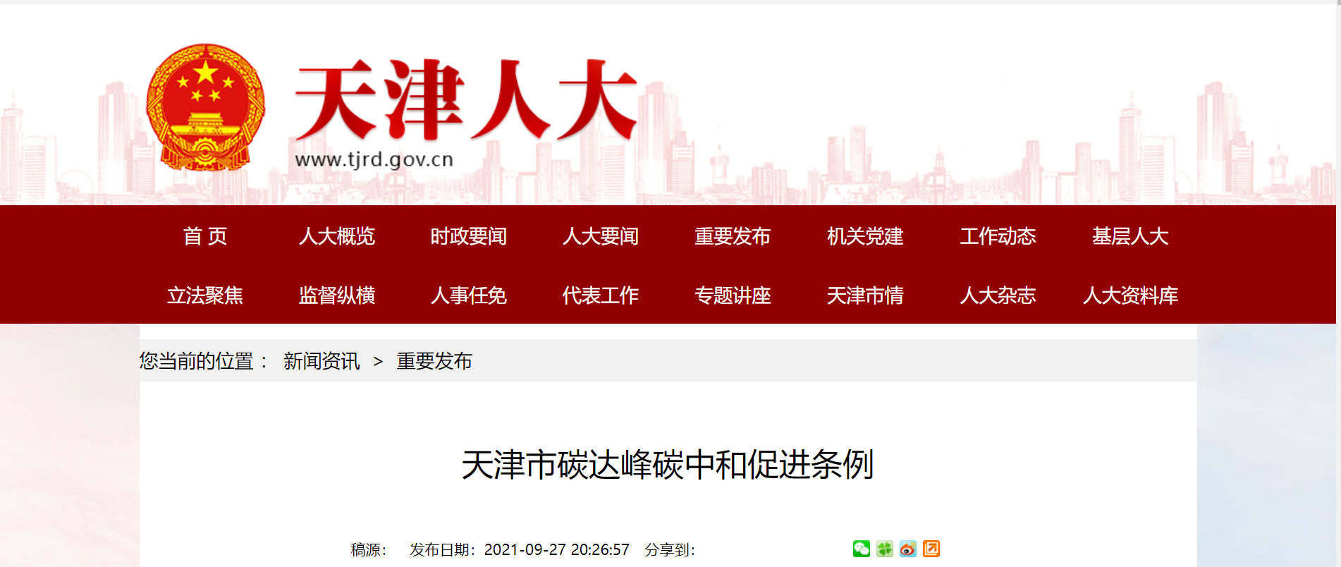日前,天津市十七届人大常委会第二十九次会议审议通过了《天津市碳达峰碳中和促进条例》(以下简称《条例》),自2021年11月1日起施行。这是全国首部以促进实现碳达峰、碳中和目标为立法主旨的省级地方性法规。