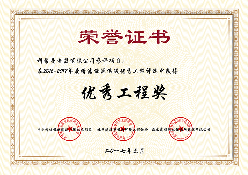 全国清洁能源供暖优秀工程奖