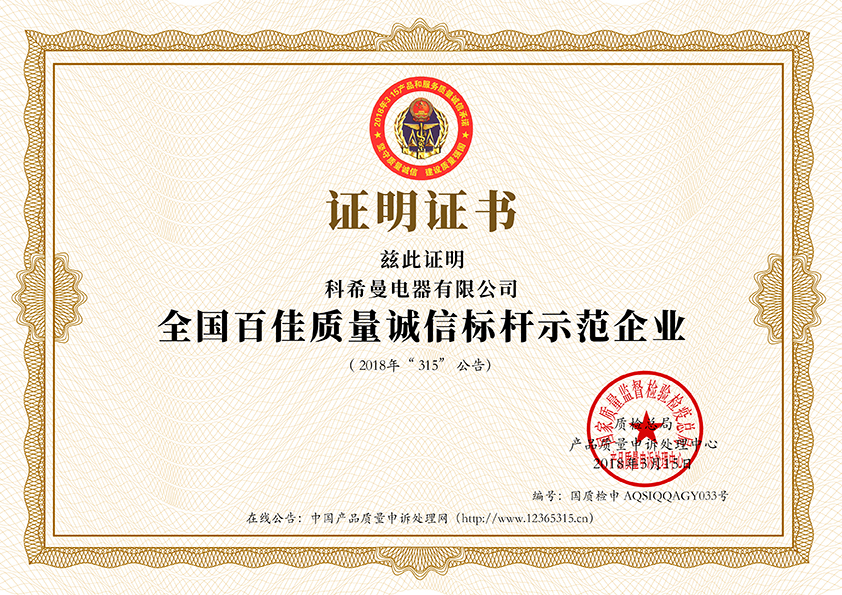 全国百佳质量诚信标杆示范企业