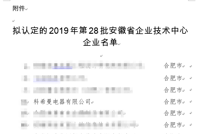 为推进以企业为主体的技术创新体系建设,增强企业创新能力,根据《安徽省企业技术中心认定管理办法》(皖经信科技〔2018〕46号),经审定,拟认定149户企业技术中心为2019年第28批“安徽省企业技术中心”,科希曼电器有限公司入选名单其中。