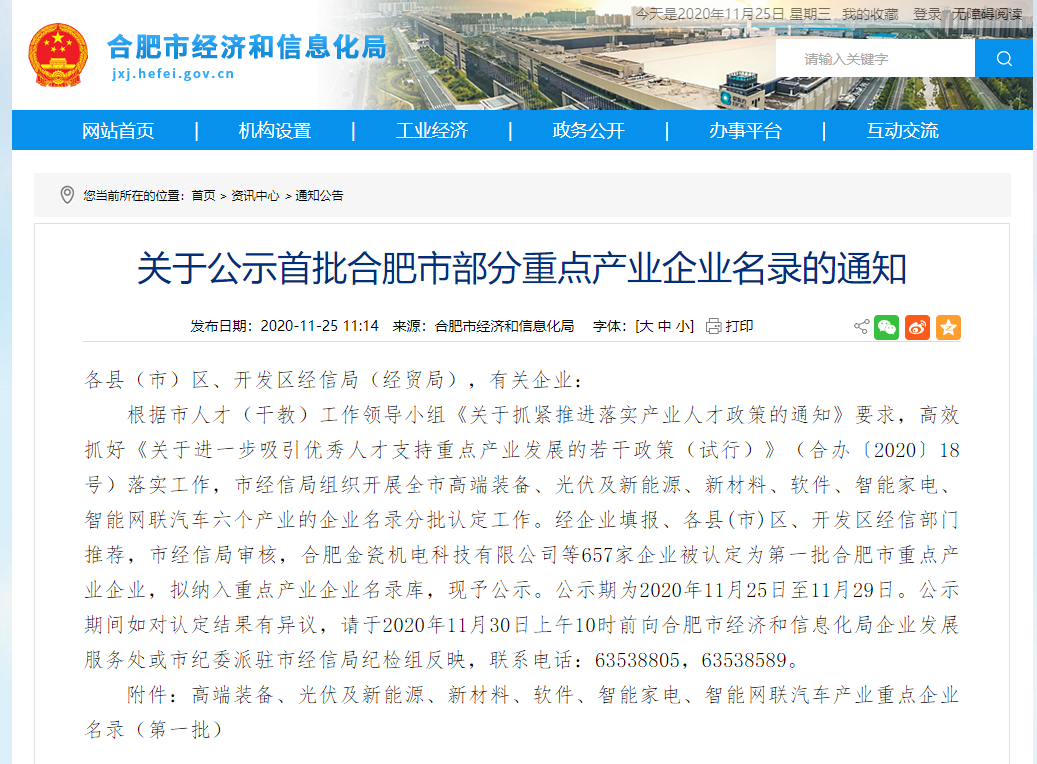 由合肥市经信局组织开展的全市高端装备、光伏及新能源、新材料、软件、智能家电、智能网联汽车六个产业的企业名录分批认定工作现已认定完毕。经企业填报、各县(市)区、开发区经信部门推荐,市经信局审核,657家企业被认定为第一批合肥市重点产业企业,拟纳入重点产业企业名录库并予以公示,科希曼电器有限公司荣誉上榜。