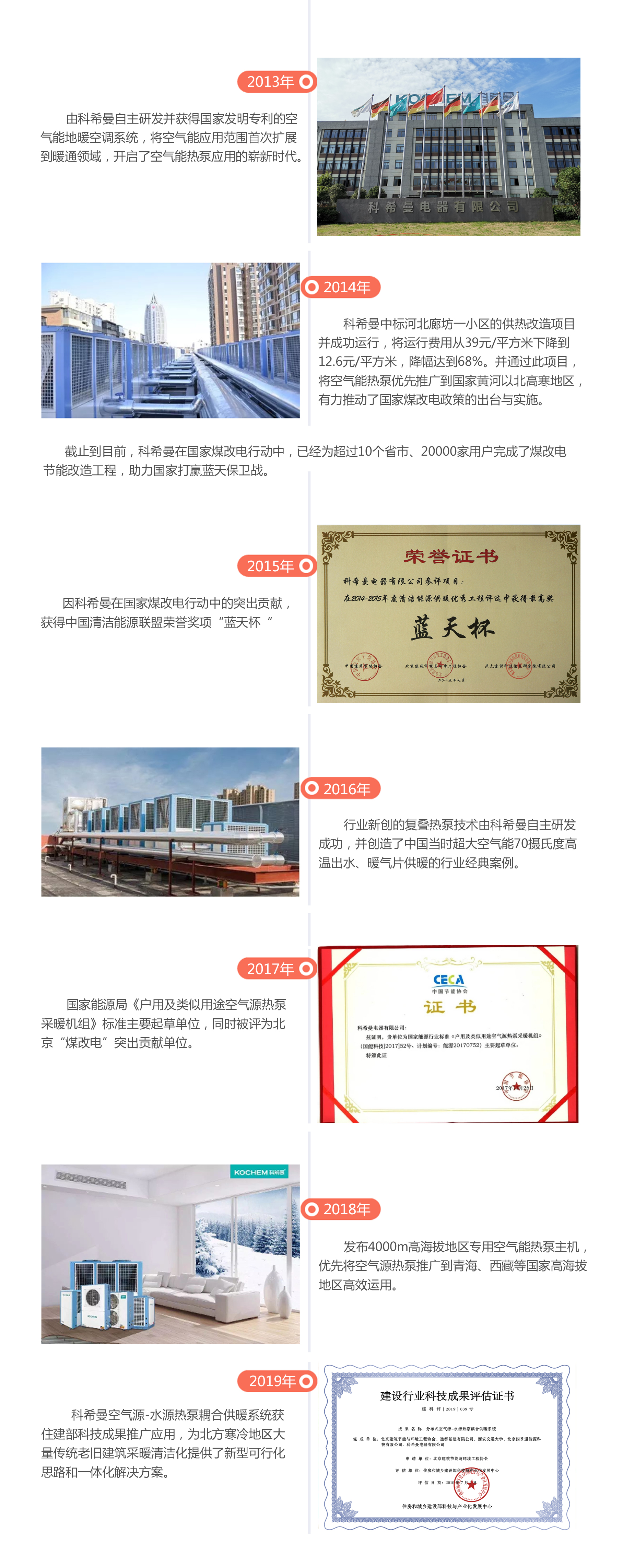 科希曼是一家专注空气能热泵产品研发、设计、生产、销售和服务于一体的全产业链高新技术企业;引进德国低温热泵核心控制技术,配合高端制造能力,引领空气源热泵新技术。是国家财政部节能产品入围单位,住建部科技成果推广应用单位,公司先后获得“中国节能环保专利奖”“国家级智能家电认证”等荣誉称号。
