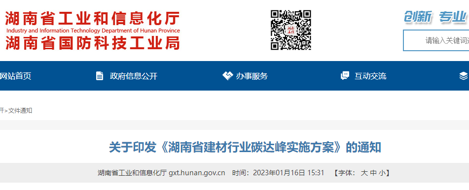 近日,湖南省工业和信息化厅发布关于印发《湖南省建材行业碳达峰实施方案》的通知,方案重点任务中提到,优化能源消费结构,