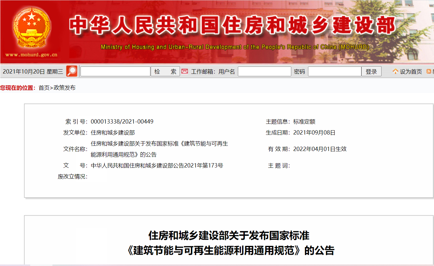 住建部近日发布公告,批准《建筑节能与可再生能源利用通用规范》为国家标准,将于2022年4月1日起实施。