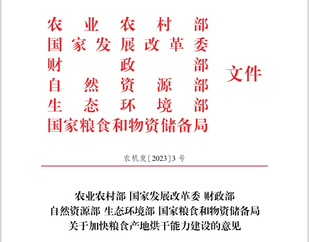 近日,农业农村部、国家发展改革委、财政部、自然资源部、生态环境部、国家粮食和物资储备局联合发布《农业农村部 国家发展改革委 财政部 自然资源部 生态环境部 国家粮食和物资储备局关于加快粮食产地烘干能力建设的意见》。