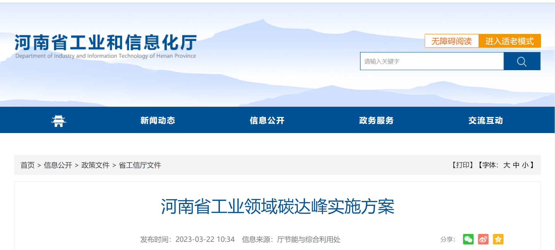 3月22日,河南省工业和信息化厅发布《河南省工业领域碳达峰实施方案》。《实施方案》提出,推动工业用能电气化。综合考虑电力供需形势,拓宽电能替代领域,在铸造、玻璃、陶瓷等重点行业,加快电窑炉、电锅炉、电动力设备等推广应用,加强对工业生产过程1000℃以下中低温热源进行电气化改造,开展高温热泵、大功率电热储能锅炉等电能替代,扩大电气化终端用能设备使用比例,提升工业整体电气化水平。强化企业电力需求管理与响应能力,开展工业领域电力需求侧管理示范企业和园区创建,示范推广应用相关技术产品,优化电力资源配置。